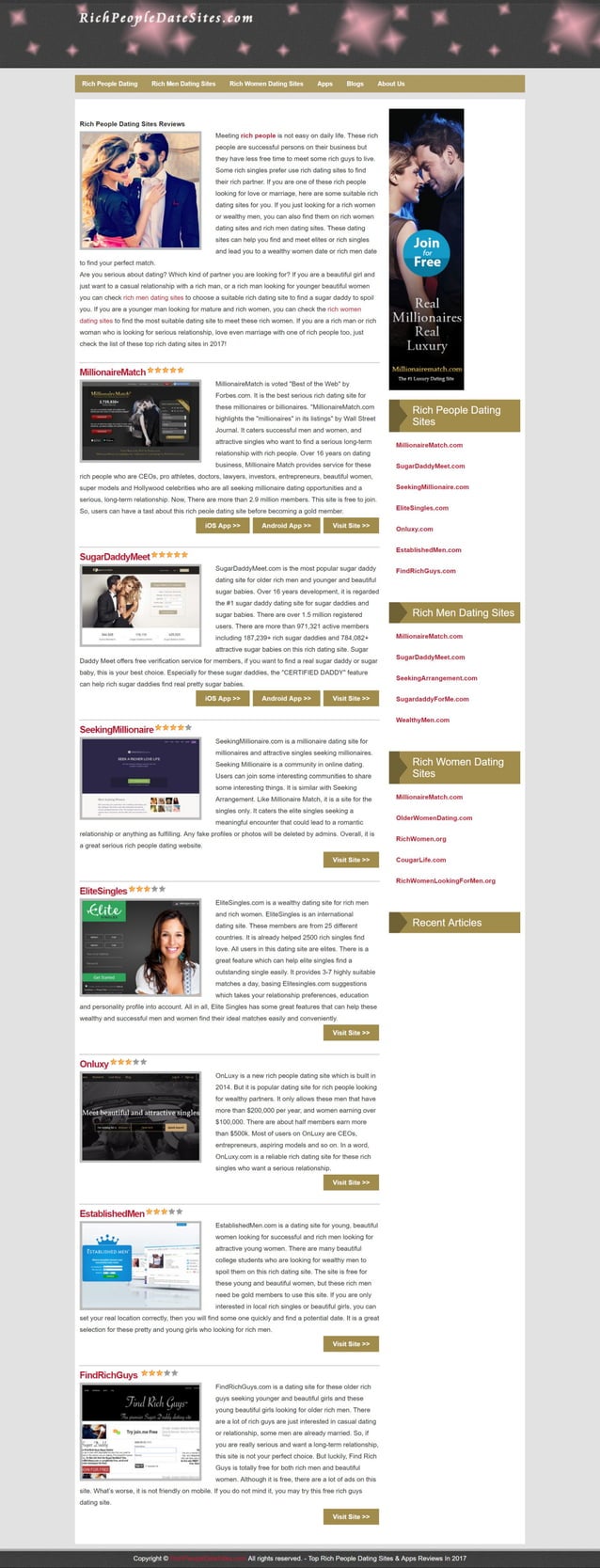 elitesingles is a distinct segment dating website that is specifically made for wealthy singles. it’s countless features that make it an ideal choice if you are trying to find a dating site that suits their specific needs. if you are finding a rich dating site that provides singles who are searching for serious relationships, then you definitely should consider utilizing among the five listed above. all of them have unique features that produce them stand out through the rest.
